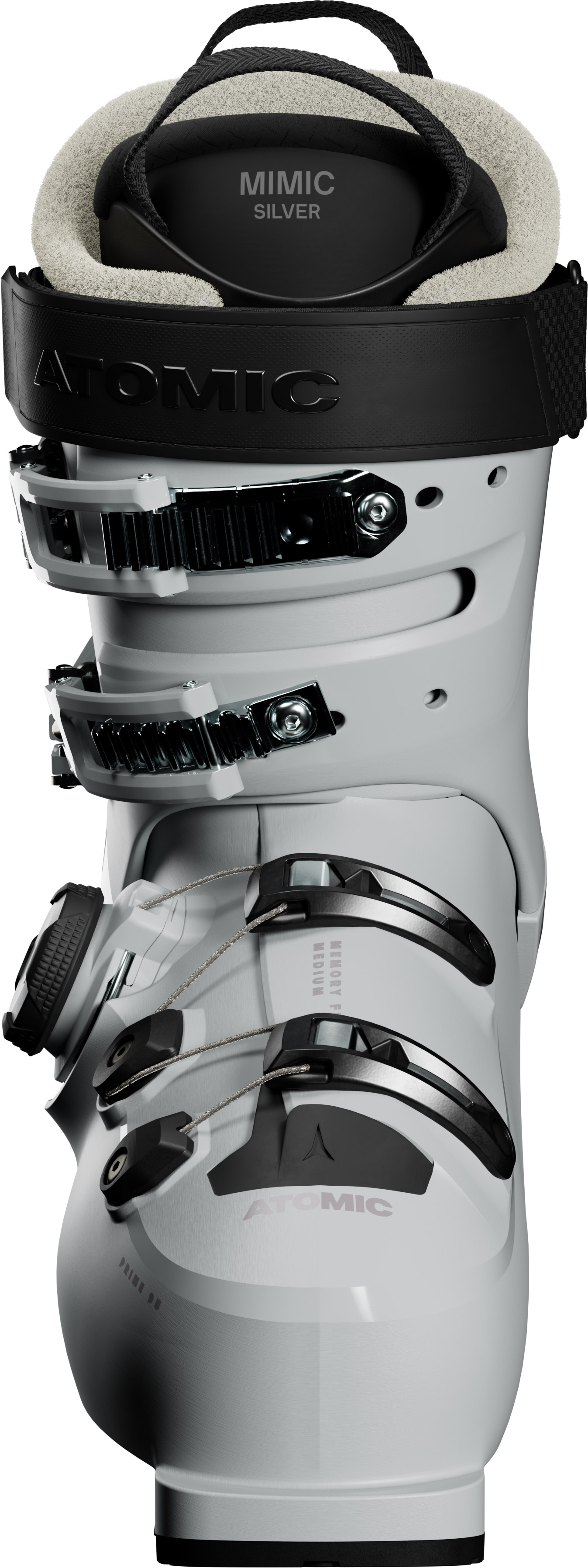 No matter where on the mountain you ski, the Atomic Hawx Prime 95 BOA W gives you comfort and assurance to stay out all day. Made for women cruising all-mountain terrain, you’ll get a medium-volume fit in a 100mm last with medium 95 flex rating. Instead of buckles on the shell, the BOA® Fit System dial micro-adjusts for a precise and snug fit. This alpine ski boot was designed using next-generation Prolite construction, which adds strategic reinforcements in key zones to give you strong downhill confidence. Energy Link connecting the rear of the boot’s shell and cuff adds immediate responsiveness when starting your turn. A soft Mimic Silver liner with Ankle Lock has great off-the-shelf fit and can be contoured around your foot and ankle through the heat-molded Mimic fitting process. Memory Fit allows for full customization of shell and cuff in minutes. To fit the unique shapes of women’s calves, the boot has a lower cuff and more volume in the leg. Adaptive Fit System (AFS) Cuff spoiler pops out to make even more room around the calf.