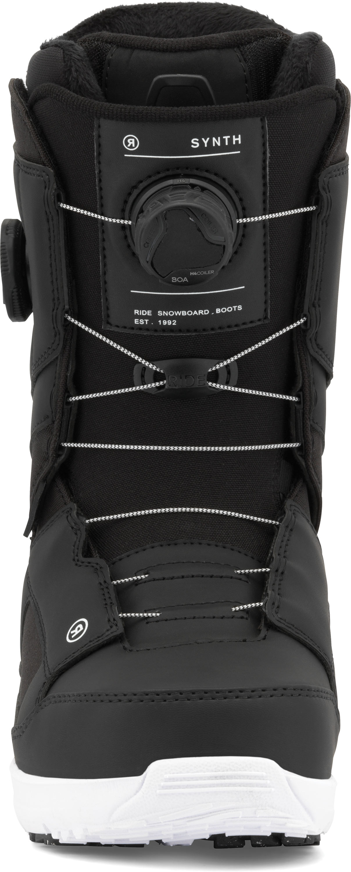BOA® TONGUE TIED™: This RIDE specific technology offers a secure fit in the ankle zone and eliminates the need for a traditional internal harness. The tongue integrated BOA® guides provides total tongue closure and next level heel hold without the potential pressure points. Depending on the model, Tongue Tied™ is paired with the traditional lace, BOA® Zonal or BOA® Coiler Fit System.