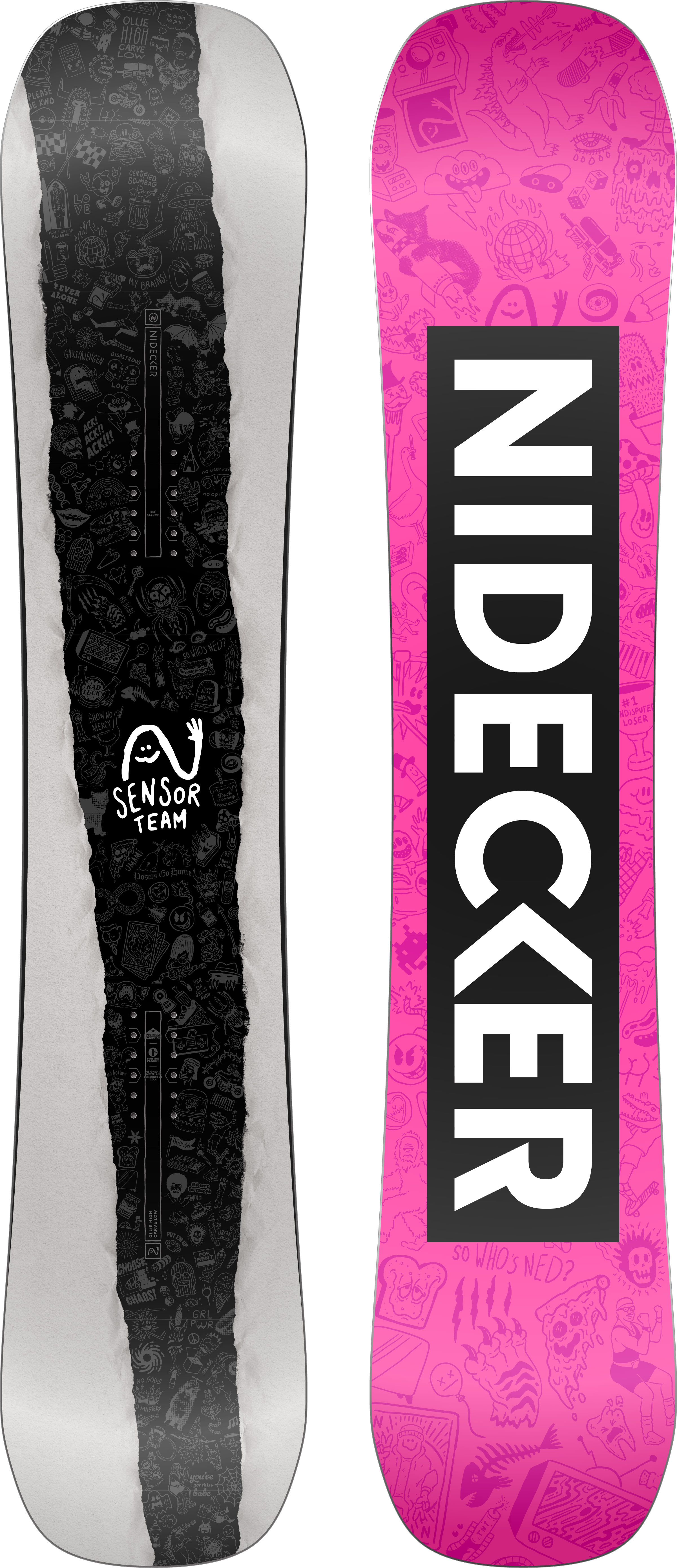The Sensor Team has been battle-tested by the Nidecker crew from Laax to Mammoth. Based on our legendary freestyle deck, we've added a touch more width for stability and dialed up the flex to help tame the burliest of transitions. A super light core makes it easy to chuck spins and get creative across the whole mountain, and with added carbon towards the nose and tail there's a ton of pop on tap.